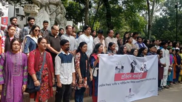 মাগুরায় হিন্দু বৌদ্ধ খ্রিস্টান ঐক্য পরিষদের মানববন্ধনে জাসদের সংহতি